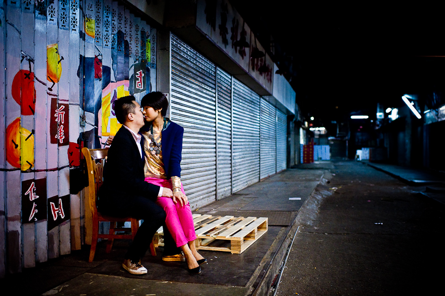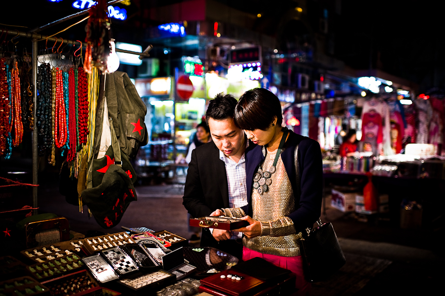 Day three on our Hong Kong photo shoot out was a bit different. When Andy asked me what would I like for the photos, I said that I wanted real Hong Kong – an urban engagement photo shoot, and so we did! We started out on Hong Kong island with the Bank of China in the back. A spectacular building, saw it from Hong Kong overview from the Peak the other day! What followed after was pretty much the night photo shoot in Hong Kong. Tshim Sha Tsui area and Kowloon, the night market and the shopping street of Hong Kong. They are all great places for engagement photography and I really like the shooting in the night. OK then – enjoy the engagement photo shoot in Hong Kong and check my play with the lights. Paris is next so stay tuned.